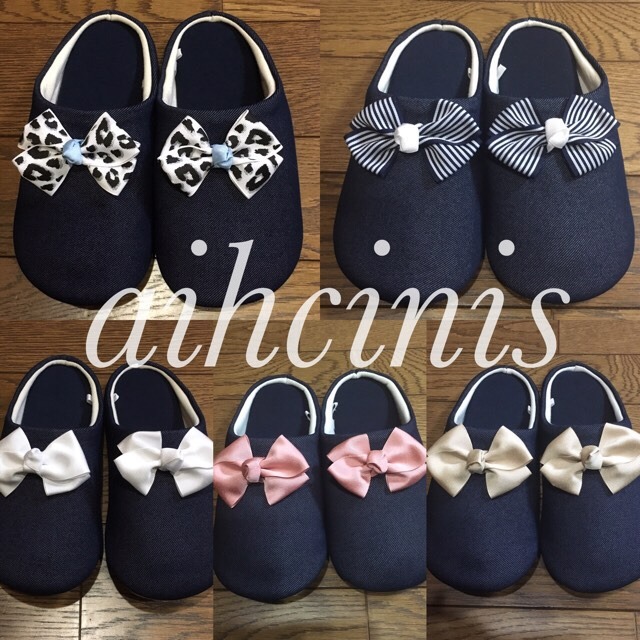 aihcinisの人気リボンシリーズにスリッパの登場です。 どのカラーも可愛くて迷っちゃう♡ 本体カラーは白黒ボーダーとデニムの二種類。 リボンカラーは写真にないお色でも当店に在庫のあるお色ならご指定いただけます。 ストライプ、レオパードの帯部分のカラーチェンジも可能です。 オーダー時にお色のご希望お知らせくださいませ。 スリッパ本体は他社製です。