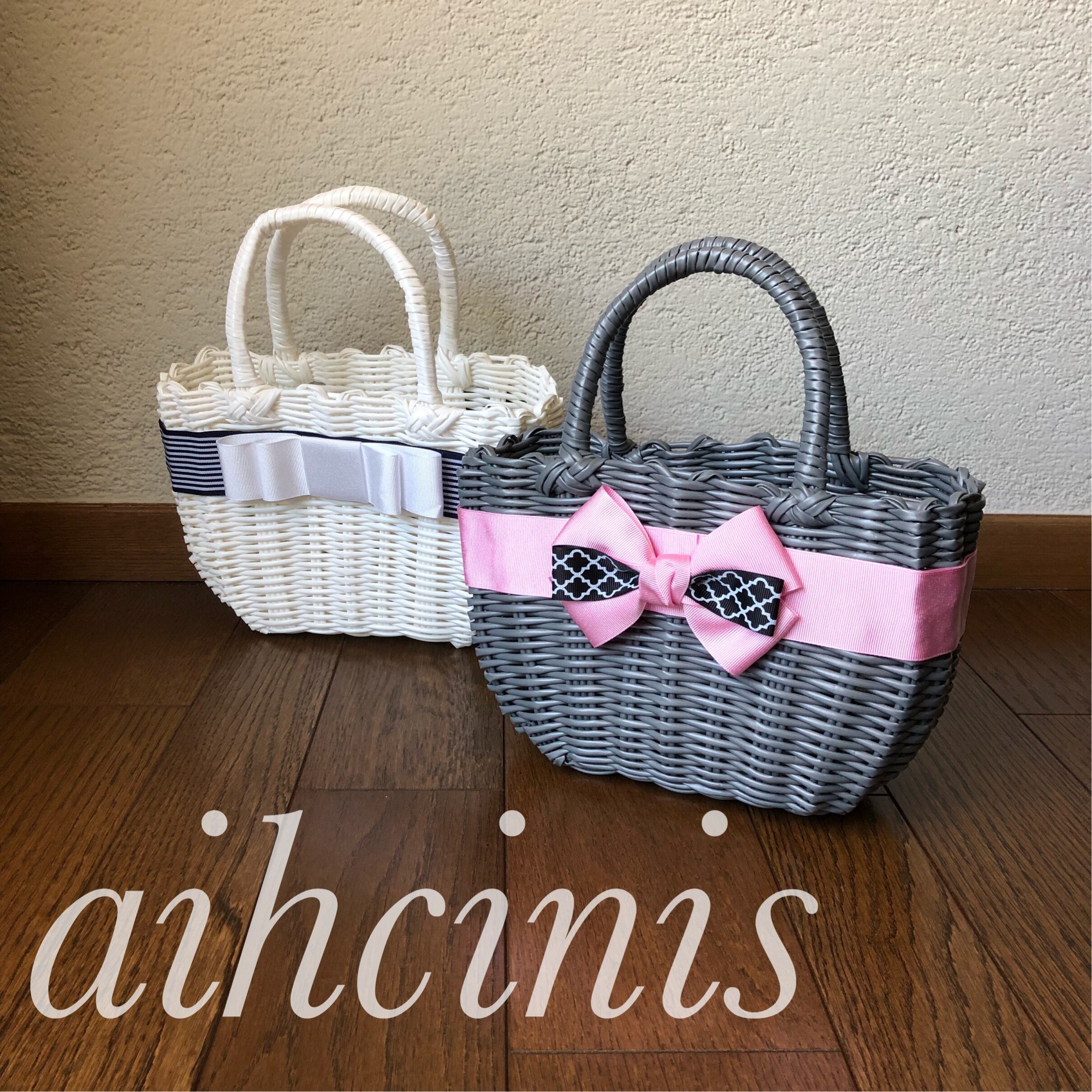 ビニール製のかごバッグなので、水濡れ、汚れに強くガンガン使えちゃう☆ 長財布OK!小さくても使いやすいサイズです。 カラー:ホワイト(本体)、ネイビー(リボン)