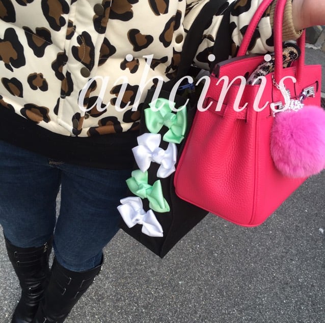サイドリボンなので、メインバッグと重ねても、可愛いおリボンが隠れません。