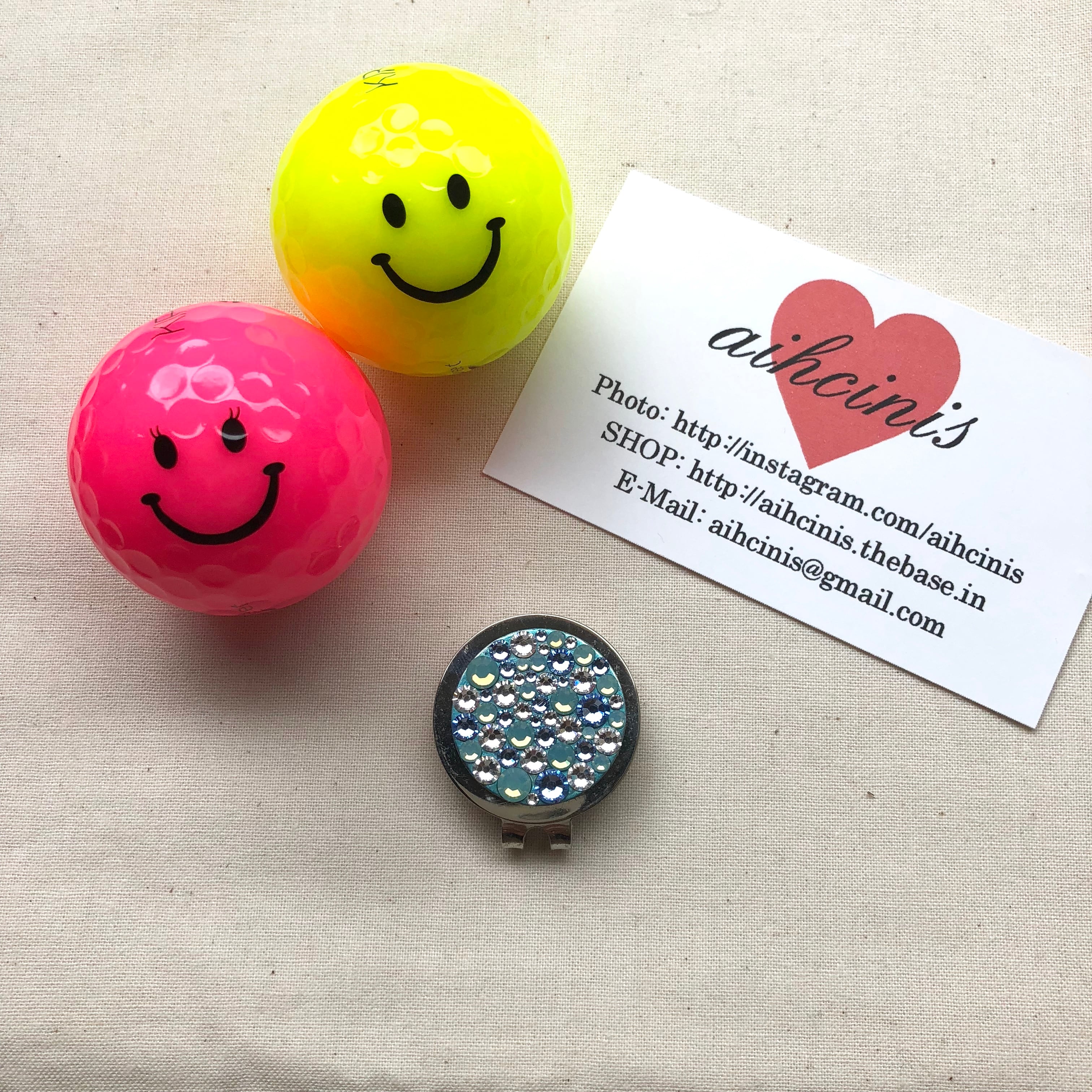 グリーンに映えるキラキラのゴルフマーカー、土台とのセットです