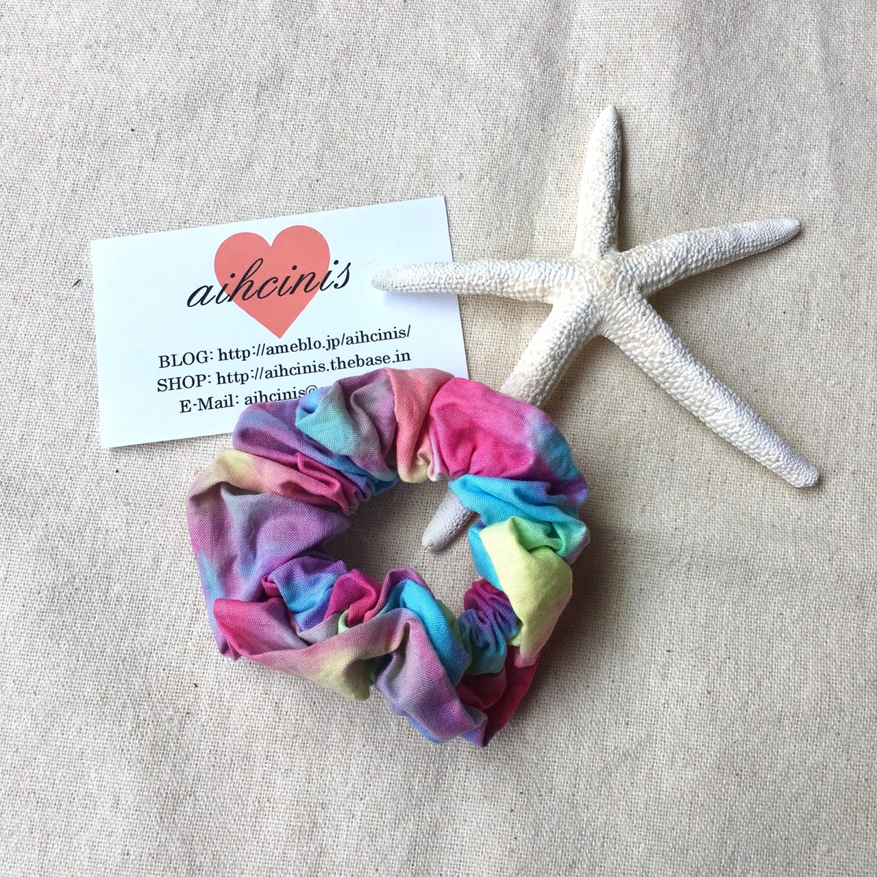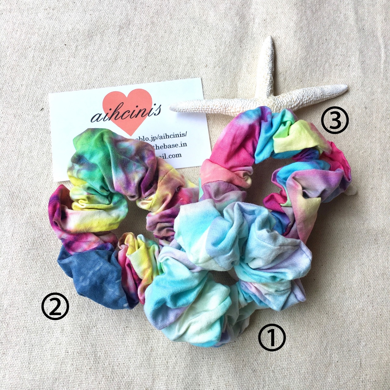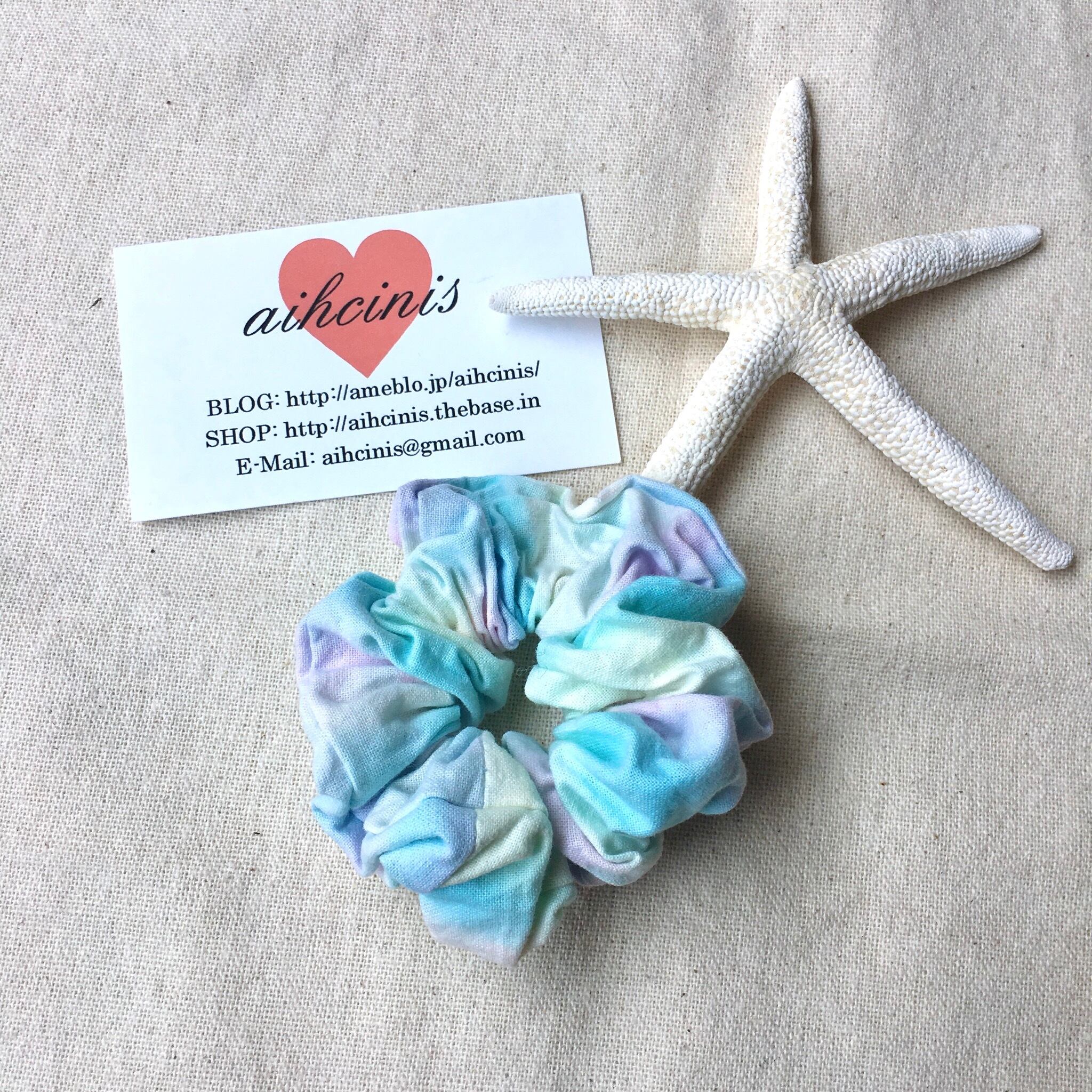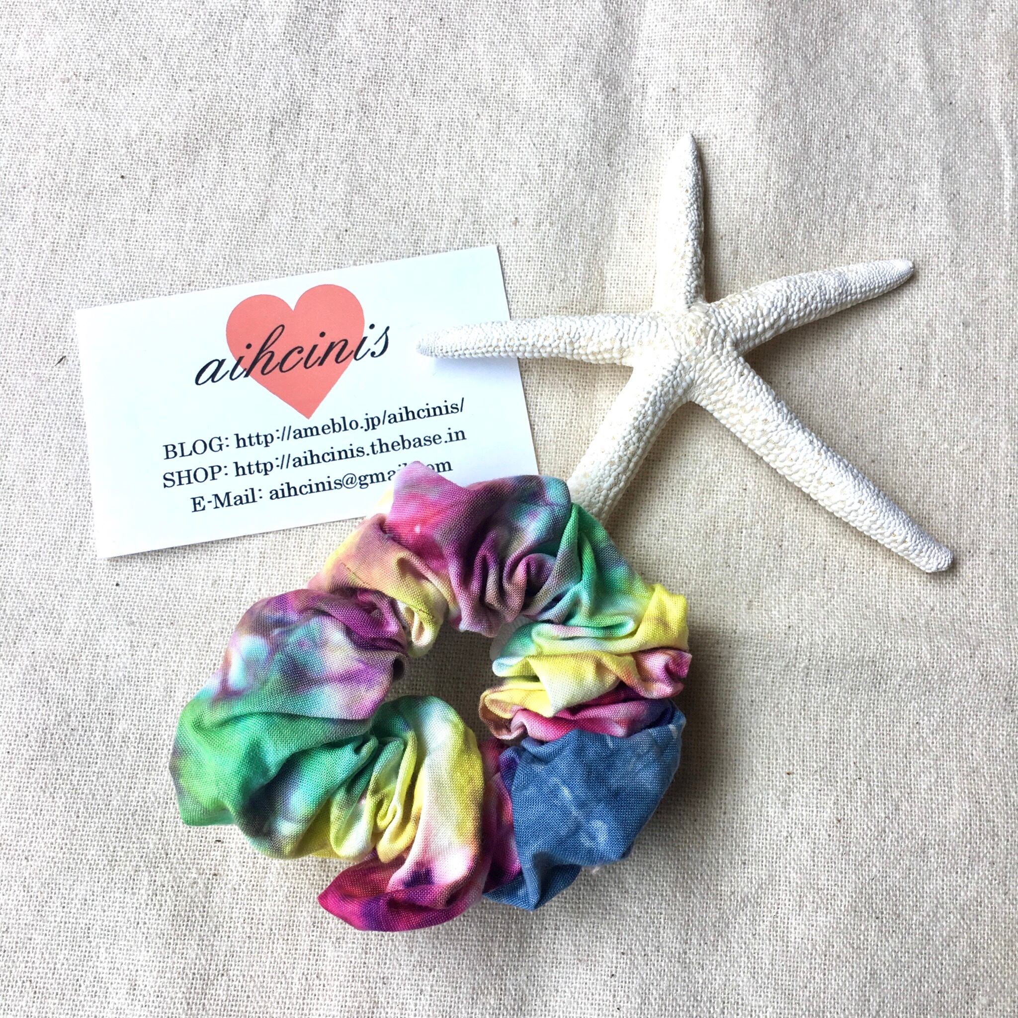 タイダイ作家さんにオリジナルで染めていただいた一点物生地で作ったシュシュ