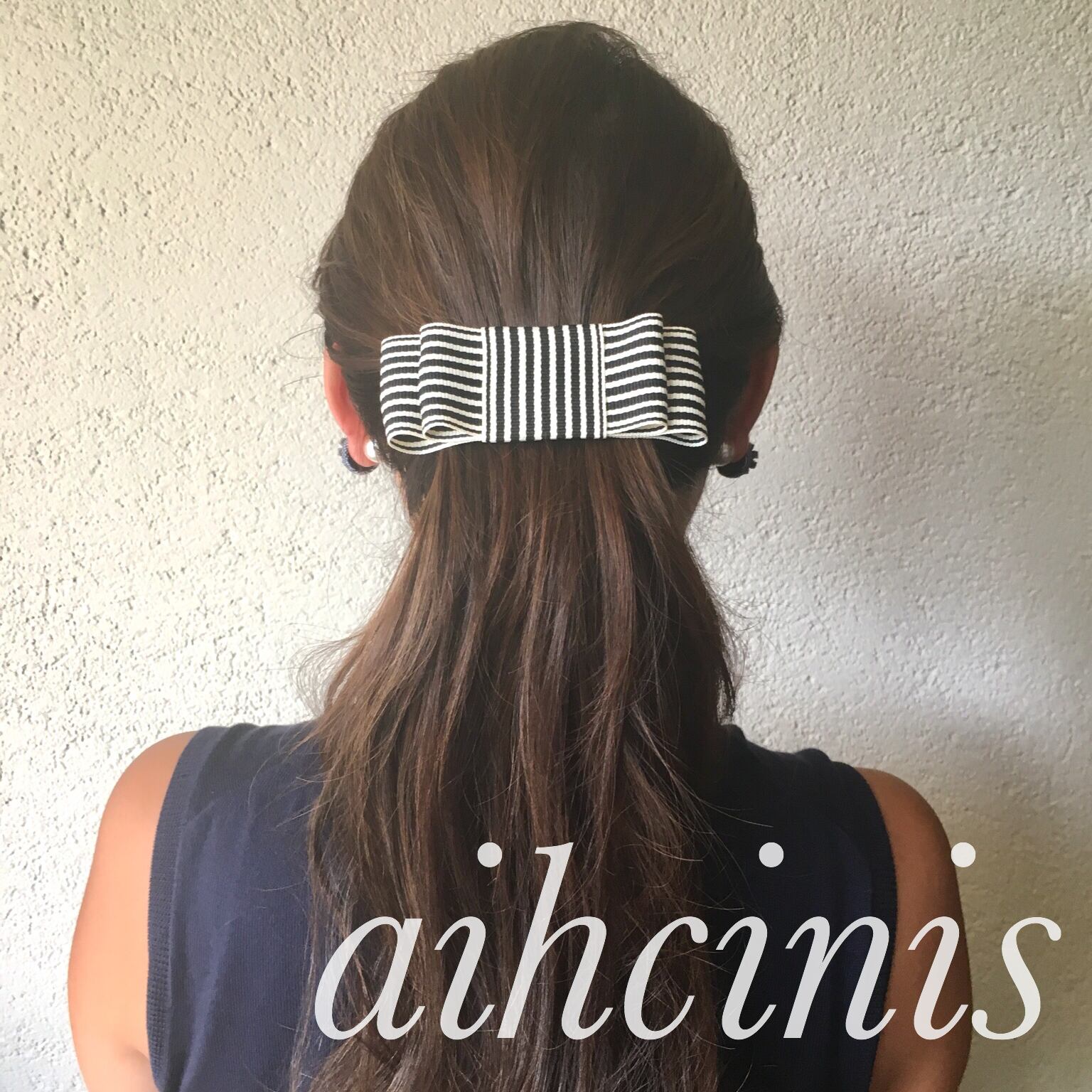 カジュアルな印象になりがちなストライプですが、こちらは細いストライプですのでカジュアルになりすぎず、お使いいただきやすいバレッタです☆